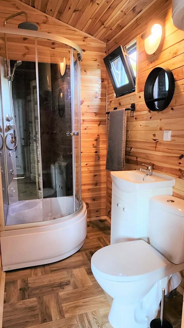 Domek dla maksymalnie 4 osób, z łazienką i aneksem kuchennym.