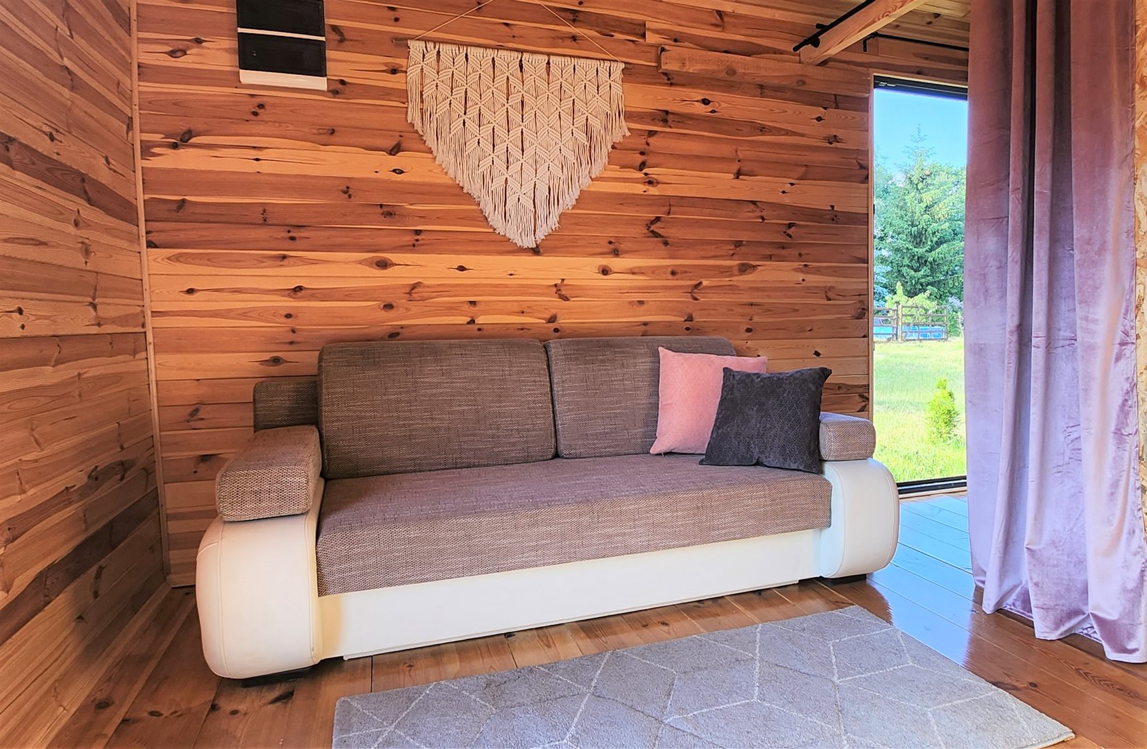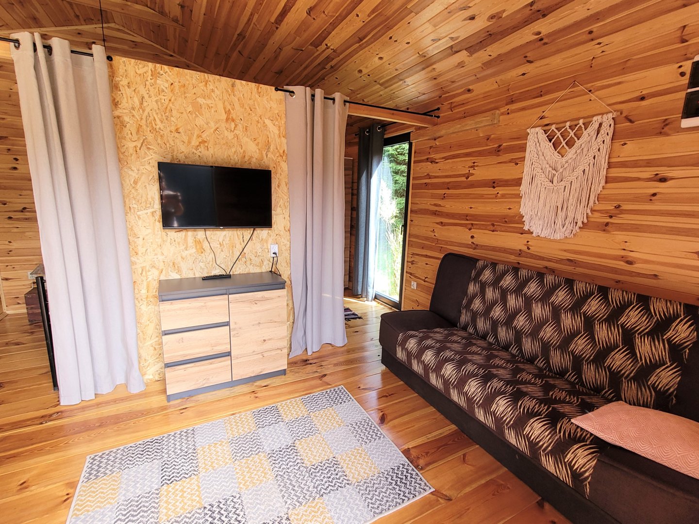 Są cztery miejsca noclegowe: dwa łóżka pojedyncze o standardowej szerokości 90 cm oraz rozkładana, dwuosobowa kanapa. Istnieje mozliwość wstawienia dodatkowego łóżka.